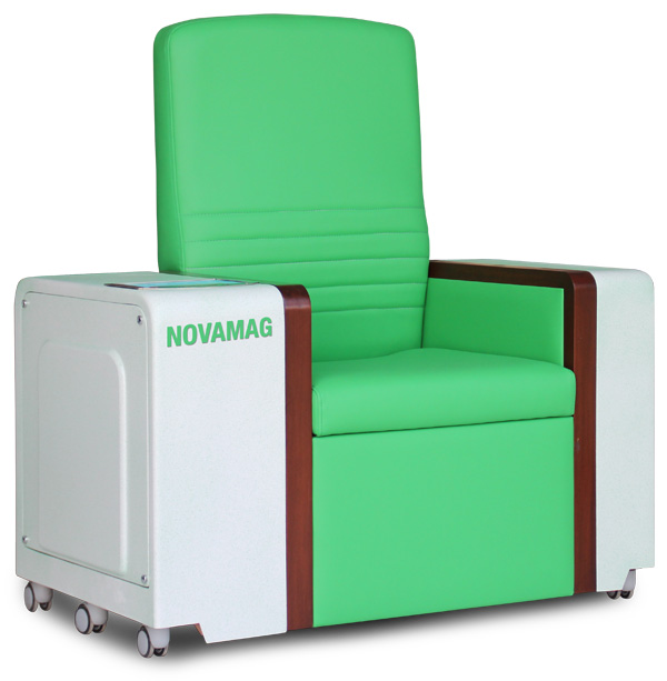 NOVAmag NT-60 este un fotoliu de tratament care generează un câmp magnetic pulsat cu efect de stimulare asupra musculaturii pelvine a pacientului/ei șezând confortabil fără să se dezbrace pe timpul unei ședințe de 20 de minute.