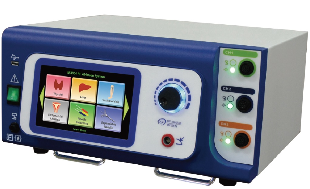 - Posibilitate de atașare ac de ablație cu răcire internă și perfuzie salină cu diametrul maxim de 1,2 mm pentru efectuare ablații tiroidiene
